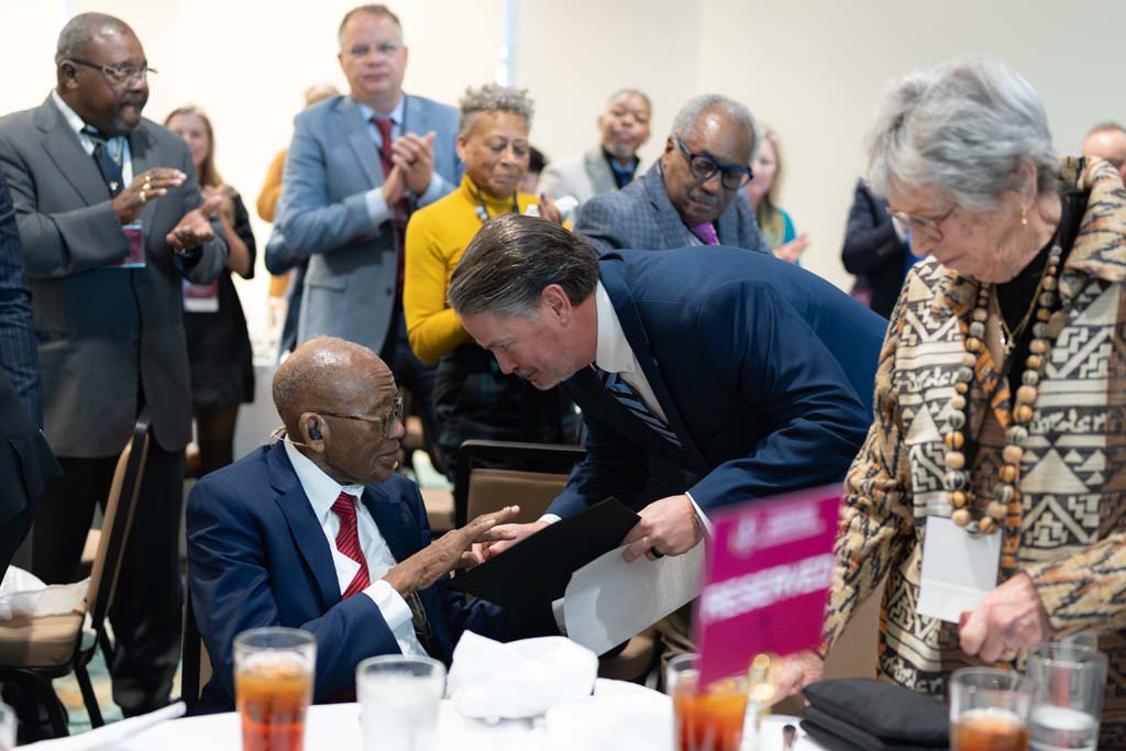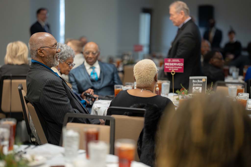 Nearly 200 attended, some traveling from central Alabama, Nashville, and Columbia, Tennessee. Dr. Wendell Gunn flew in from Connecticut for the event. Gunn was the plaintiff in Attorney Gray’s 1963 case that desegregated Florence State College (now the University of North Alabama (UNA). In what Attorney Gray labeled, “The easiest case I tried,” Gunn entered the college and proved an outstanding student. He would later work as an economic advisor in the White House, and until 2025, served as Trustee for the University. Fittingly, Dr. Gunn returned to Florence to honor “one of my heroes,” and UNA was the event’s hosting sponsor.