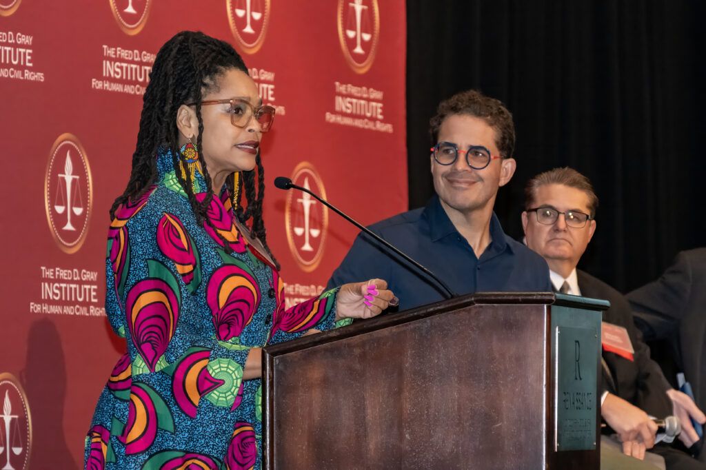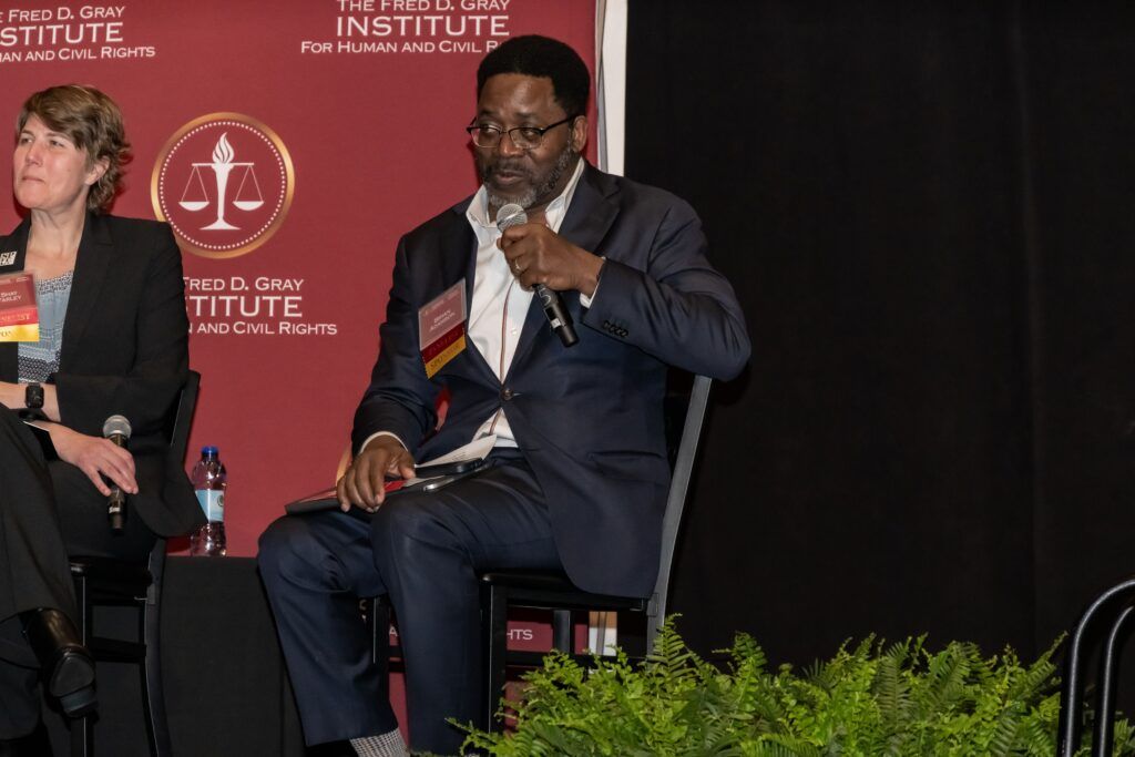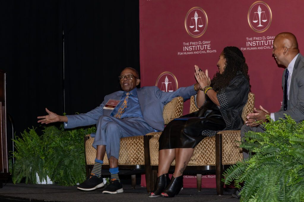 Professor Ayesha Bell Hardaway, Director and Research Coordinator of the Social Justice Institute at Case Western Reserve University and Professor at the School of Law, interviewed Attorneys Gray and Stevenson. A historic moment; two civil rights icons sharing the same stage.